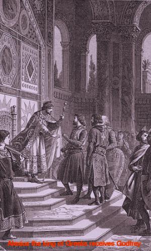 Πρίγκιπας της Αγίας Αυτοκρατορίας, που είχε ξεκινήσει υπακούοντας στον πάπα, μπορούσε να μπει στην υπηρεσία του Γραικού αιρετικού αυτοκράτορα; Ο Γοδεφρείδος όμως για το συμφέρον της Σταυροφορίας, υποχώρησε.