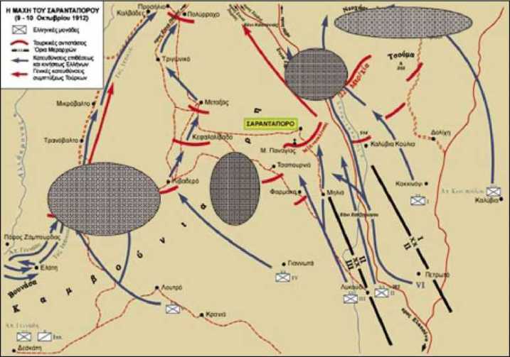 Από τις 7 Οκτωβρίου η Στρατιά άρχισε να προελαύνει προς βορρά για να συναντήσει τις κύριες τουρκικές δυνάμεις, που αποτελούνταν από δύο και περισσότερες Μεραρχίες, υπό το Στρατηγό Χασάν Ταξίν Πασά και ήταν εγκαταστημένες αμυντικά στην οχυρή τοποθεσία Σαρανταπόρου (Γλύκοβο) και Λαζαράδων – Βογκόπετρας.