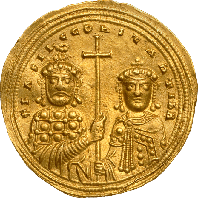 εξώφυλλο: Αντίγραφο μινιατούρας του αυτοκράτορα Βασιλείου Β’ με επίσημη ενδυμασία, αναπαράσταση στέψης με το αυτοκρατορικό στέμμα από αγγέλους. Αντίγραφο Ψαλτηρίου του Βασιλείου Β’ (Ψαλτήριο Βενετίας), BNM, κα γρ. 17, φάκ. 3 from the Middle Ages, unknown, Public domain, via Wikimedia Commons