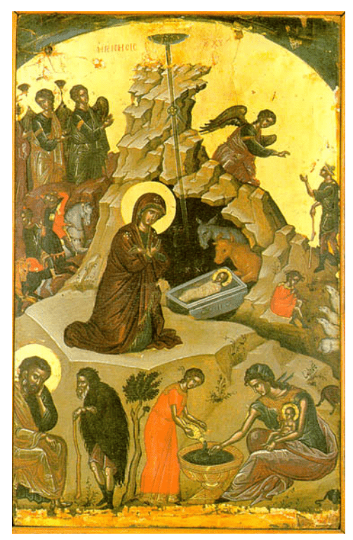῾Η ὀρθόδοξη εἰκόνα τῆς Γεννήσεως μορφοποιεῖ τὴν διδασκαλία τῆς ᾿Εκκλησίας κρατώντας ὅλο τὸ θεολογικὸ βάθος της, καθὼς βρῆκε στὴν ἔκφραση τὸ μέτρο ἀνάμεσα στὸ θεῖο καὶ τὸ ἀνθρώπινο.
