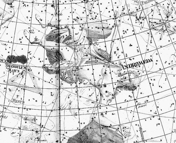Andromeda as depicted in Urania’s Mirror, a set of constellation cards published in London c. 1825, showing the constellation from the inside of the celestial sphere_source: wikipedia