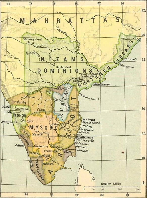 *Nawab=Τιμητικός τίτλος που απονεμόταν σε Μουσουλμάνους διοικητές επαρχιών της νότιας Ινδίας από τους Mughal αυτοκράτορες.