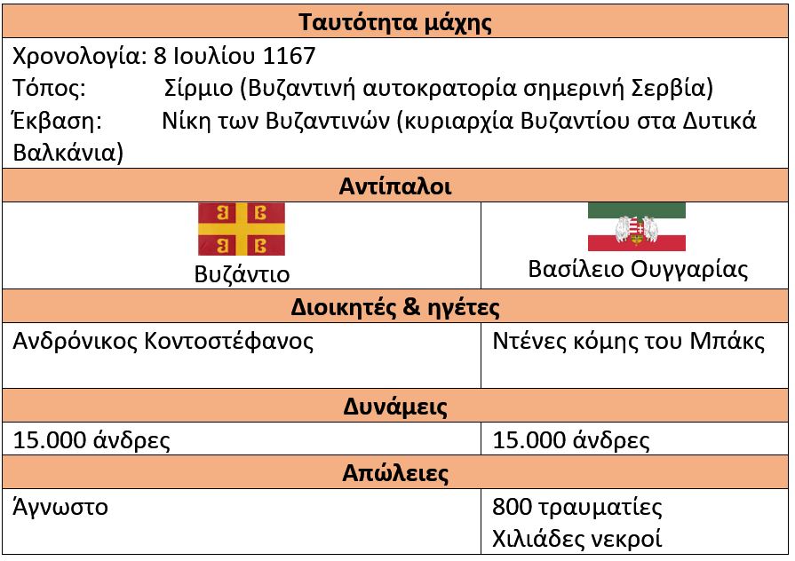 Από τις αρχές μέχρι τα μέσα του 1160, οι Ούγγροι επεδίωκαν συνεχώς να εντάξουν το Σίρμιο στην σφαίρα της πολιτικής τους επιρροής, αλλά εμποδίστηκαν τουλάχιστον δύο φορές από την Βυζαντινή στρατιωτική δύναμη. Οι Ούγγροι διέσχισαν τον Δούναβη και πάλι το 1166, καταλαμβάνοντας το Σίρμιο και επιτιθέμενοι στην Δαλματία, προσάρτησαν αμφότερες τις επαρχίες, προκαλώντας την αντίδραση του Βυζαντίου. Ο αυτοκράτορας Μανουήλ Κομνηνός ανταπέδωσε με μια τριπλή επίθεση στην Ουγγαρία από νότο, ανατολή και βορειοανατολικά (αυτές οι επιθέσεις θα μπορούσε να χαρακτηριστούν ως μεγάλης κλίμακας επιδρομές) και ένα χρόνο αργότερα, διέταξε την εισβολή στην επαρχία Σίρμιο, με την πρόθεση να την αποσπάσει από την Ουγγαρία, άπαξ δια παντός.