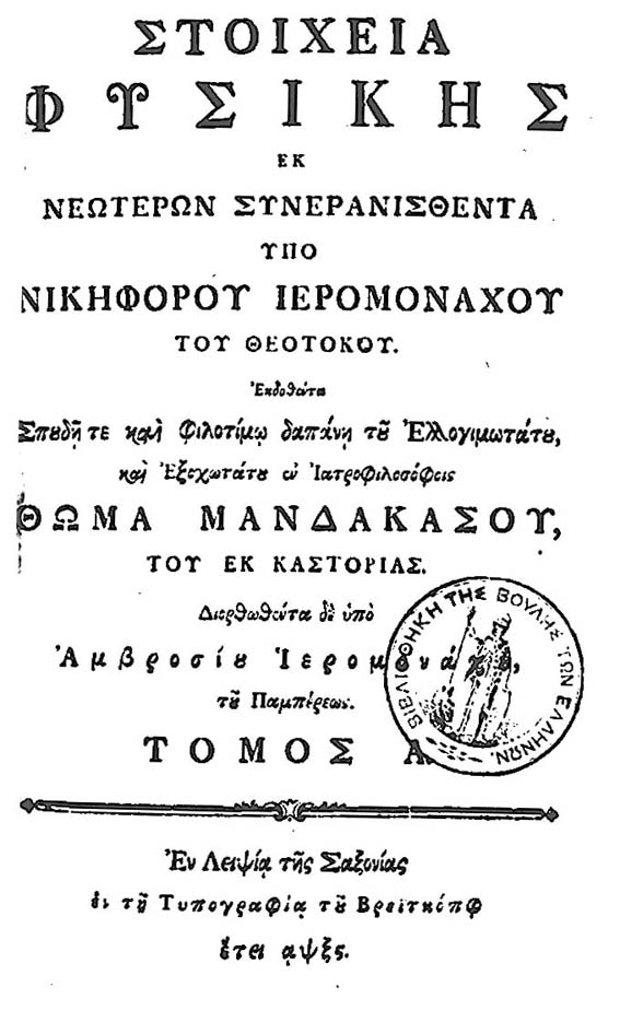 Kαpaς Γ. Οι Φυσικές – Θετικές Επιστήμες στον Ελληνικό 18ο Αιώνα. Αθήνα 1977