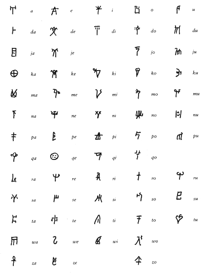 Το βασικό συλλαβάριο της γραμμικής Β (Χρηστίδης 2005, 65)
