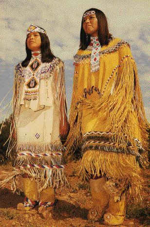 - Οι γυναίκες φορούσαν ρούχα φτιαγμένα από δέρμα ελαφιού. Συνήθως είχαν μακριά μαλλιά που ήσαν ξέπλεκα, ή δεμένα σε κότσο και μερικές φορές έφεραν στολίδια που ονομάζονταν nah-leens. Όπως και οι άνδρες, φορούσαν υποκάμισα διακοσμημένα με χάντρες ή κρόσσια. Τα μοκασίνια, ή οι μπότες με χάντρες ήταν τα βασικά υποδήματα αμφότερων των φύλων.