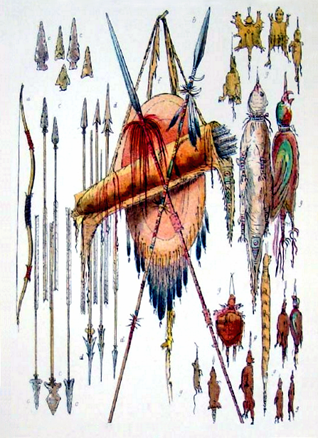 Η ανωτέρω εικόνα απεικονίζει πολεμιστή Blackfeet να κρατά ράβδο προσευχής η οποία χρησιμοποιείτο για προσφορές – αναφορές στα πνεύματα. Οι άντρες της φυλής έφεραν έντονη βαφή προσώπου σε θρησκευτικές τελετές και σε περιόδους πολέμου. Η βαφή χρησιμοποιείτο για να φαίνονται οι πολεμιστές άγριοι, ενώ τα σχέδια και τα χρώματα πιστεύεται ότι κατέχουν μαγικές δυνάμεις προστασίας. Το κόκκινο χρώμα που φέρει ο εικονιζόμενος συμβόλιζε τον πόλεμο, το αίμα, την δύναμη, την ενέργεια και την επιτυχία.