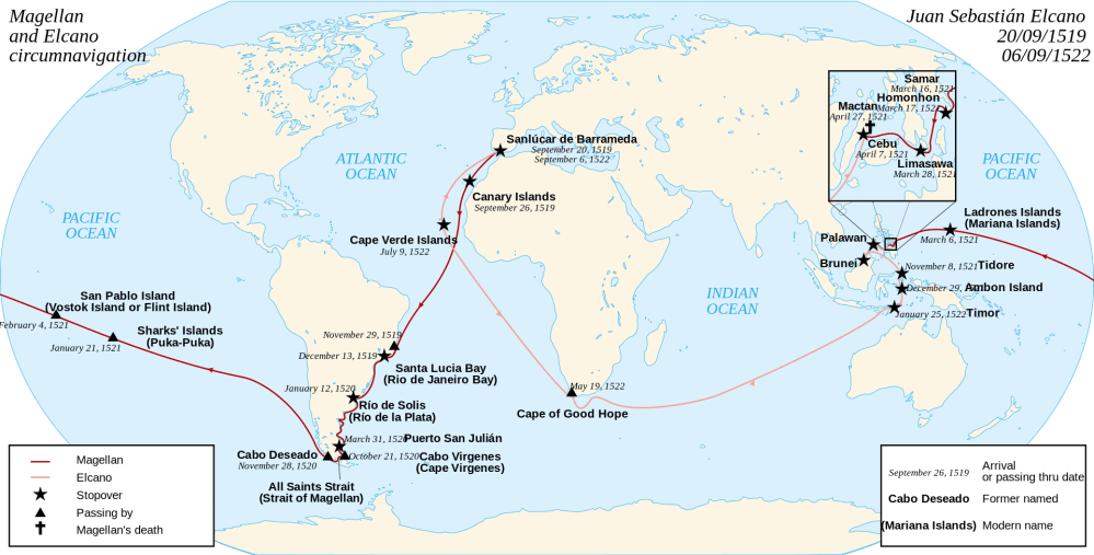 Ο Χουάν Σεμπαστιάν Ελκάνο συνέχισε το ταξίδι του Μαγγελάνου και ολοκλήρωσε τον διάπλου της γης τον Σεπτέμβριο του 1522.
