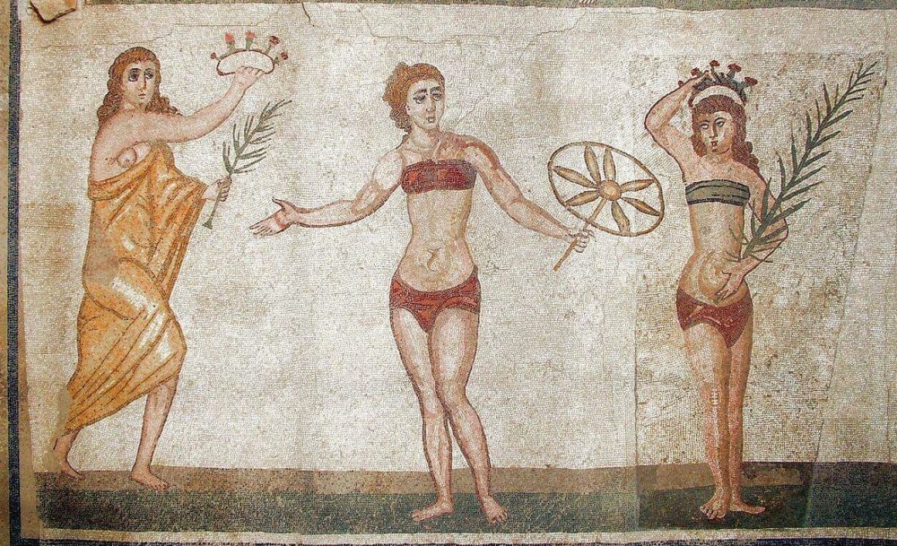 Οι γυναίκες κάτω από τα ενδύματά τους φορούσαν ως στηθόδεσμο το στροφίον που ήταν μια μεγάλη μάλλινη λωρίδα υφάσματος τυλιγμένη στα στήθη και γύρω από τους ώμους. Άνδρες και γυναίκες ενίοτε φορούσαν τριγωνικό εσώρουχο, που ονομάζονταν περίζωμα.