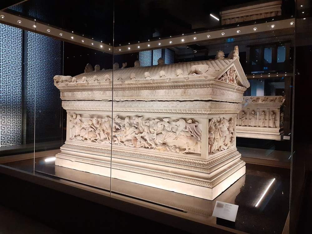 εξώφυλλο: Έγχρωμη απεικόνιση του Αβδαλώνυμου στη σαρκοφάγο του Μεγάλου Αλεξάνδρου.