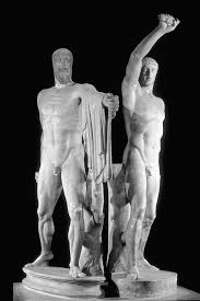 Εἰκ. 2: Τὸ σύνταγμα τῶν τυραννοκτόνων Ἁρμοδίου καὶ Ἀριστογείτονα. Ρωμαϊκὸ ἀντίγραφο ἔργου τῶν Κριτίου καὶ Νησιώτη (477/76 π.Χ.). Νάπολι. Museo Archeologico Nazionale di Napoli. Πηγή: Album / Art Resource, NY, ἀρ. φωτ. orz054336.