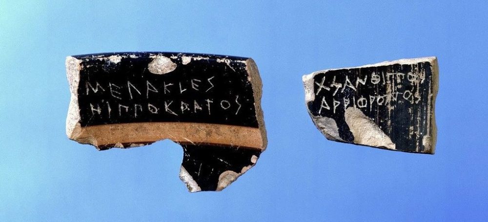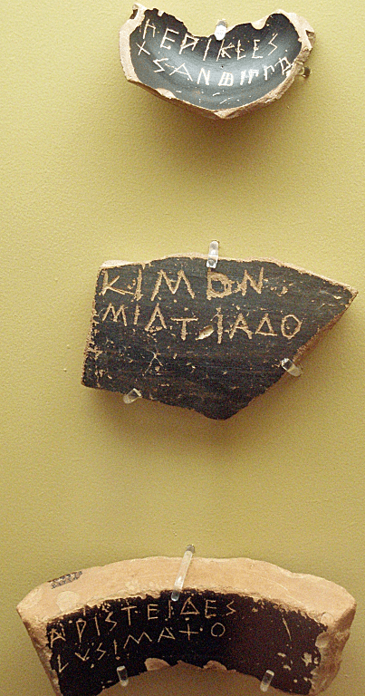 Την δεκαετία του 1960, οι αρχαιολόγοι έκαναν μια σημαντική ανακάλυψη, όταν βρήκαν σε χώρο υγειονομικής ταφής στην Αθήνα περίπου 8.500 κεραμικές πλάκες, πιθανότατα από ψηφοφορία που έγινε το 471 π.Χ. Τα κεραμικά θραύσματα ήταν το αρχαίο αντίστοιχο των ψηφοδελτίων και χρησιμοποιούνταν για τον εξορισμό των Αθηναίων πολιτών. Ονομάζονταν όστρακα και σε κάθε θραύσμα ήταν γραμμένο το όνομα του υποψήφιου που ο ψηφοφόρος ήθελε να εξοριστεί από την πόλη τα επόμενα 10 χρόνια.
