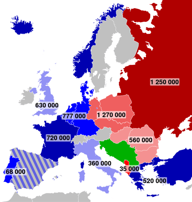Το Σύμφωνο της Βαρσοβίας, στο οποίο μετείχε η ΕΣΣΔ και οι περισσότερες χώρες της ανατολικής Ευρώπης, συγκροτήθηκε ως αντίπαλο δέος του ΝΑΤΟ.