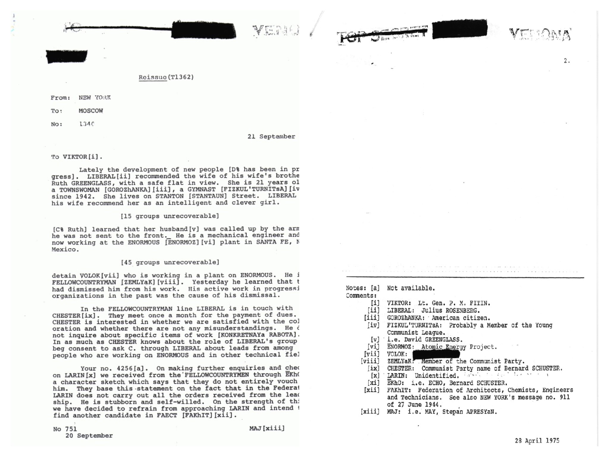 Η δράση τους ως κατάσκοποι ίσως είχε μείνει κρυφή, μέχρι την σύλληψη του Κλάους Φούκς, ενός Γερμανού φυσικού που είχε εγκαταλείψει τους Ναζί στις αρχές της δεκαετίας του 1930 και συνέχισε την προηγμένη του έρευνα στη Βρετανία. Ο Φούκς εργάστηκε σε μυστικά Βρετανικά σχέδια τα πρώτα χρόνια του Β’ Παγκοσμίου Πολέμου και στη συνέχεια μεταφέρθηκε στις Ηνωμένες Πολιτείες, όπου εντάχθηκε στο «Πρόγραμμα Μανχάταν».