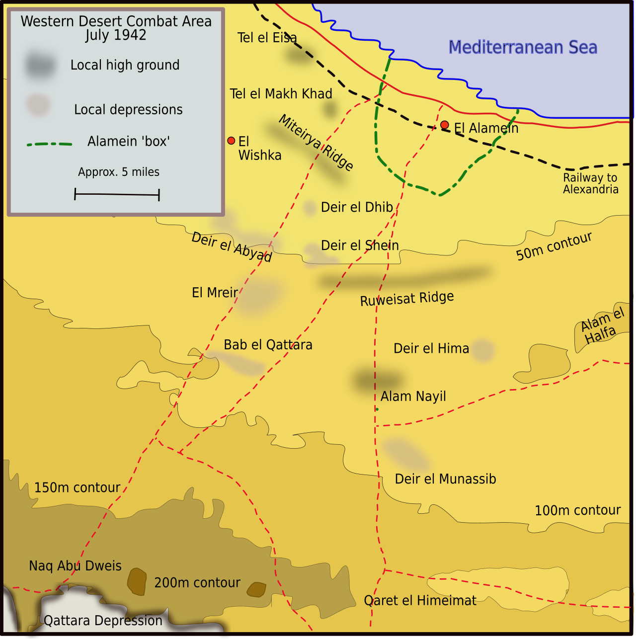 Μετά τη συντριπτική ήττα στη μάχη της Γκαζάλα τον Ιούνιο του 1942, η 8η Στρατιά υποχώρησε ανατολικά προς την Αίγυπτο. Φτάνοντας στα σύνορα, ο διοικητής αντιστράτηγος Νιλ Ρίτσι, επέλεξε να μην κάνει στάση, αλλά να συνεχίσει να υποχωρεί στη Μέρσα Ματρούχ περίπου 100 μίλια ανατολικά. Δημιουργώντας μια αμυντική διάταξη βασισμένη σε οχυρωμένες θέσεις που συνδέονταν με ναρκοπέδια, ο Ρίτσι προετοιμάστηκε να αντιμετωπίσει τις δυνάμεις του στρατάρχη Έρβιν Ρόμελ.