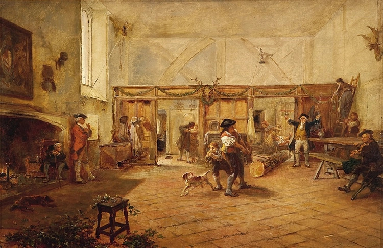 Η τραπεζαρία του αρχοντικού μπορεί να φιλοξενούσε κάποιους αναπάντεχους επισκέπτες καθώς οι δουλοπάροικοι του κτήματος είχαν τη δυνατότητα να ζήσουν τα Χριστούγεννα όταν σύμφωνα με την παράδοση τα αφεντικά τους προσκαλούσαν σε γεύμα στο αρχοντικό την ημέρα των Χριστουγέννων. Σε ορισμένα κτήματα οι προσκλήσεις περιορίζονταν σε δύο μόλις τυχερούς παραλήπτες, παραδοσιακά έναν από τους φτωχότερους κι έναν από τους πλουσιότερους αγρότες, οι οποίοι μπορούσαν να προσκαλέσουν επιπλέον δυο φίλους τους. Δυστυχώς, οι περισσότεροι χωρικοί που προσκαλούνταν στην κατοικία του τοπικού άρχοντα, έπρεπε να φέρουν τα δικά τους πιάτα και καυσόξυλα και βέβαια, όλα τα τρόφιμα που όπως και να ‘χει, είχαν παραχθεί από τους ίδιους. Ωστόσο, απολάμβαναν δωρεάν μπύρα, είχαν τουλάχιστον την ευκαιρία να δουν πώς ζούσαν οι άλλοι μισοί και να μετριάσουν τη μουντάδα του χειμώνα στην ύπαιθρο.